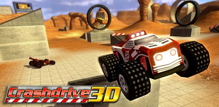 Speed across a gigantic map covered with ramps, hoops and bizarre terrain. Jump, stunt and score as many points as possible to grab glory and unlock new vehicles such as busses, muscle cars, and monster trucks. With 4 events, including checkpoint racing and coin collecting, 20 vehicles to unlock, and tons of fast fun, Crash Drive 3D will drive you mad!